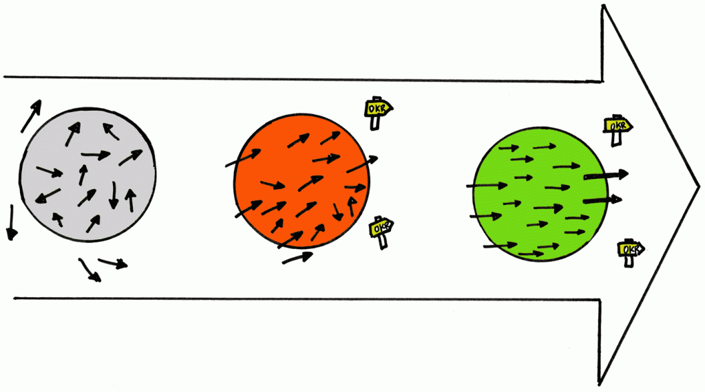 ¿Cómo aunamos todo esto? Con Alineación de esfuerzos de toda la compañía hacia estos objetivos. Nosotros usamos OKR: ayuda a poner foco en todos los equipos, a que sepan cual es el problema o el objetivo que buscamos, se hacen cargo de él, tienen libertad para afrontarlo y todos, todos, tenemos un mecanismo para evaluar constantemente, no sus horas de dedicación a “cualquier cosa”, sino cómo contribuyen al objetivo planteado con iniciativas que no persiguen otra cosa. Eso sí es optimizar esfuerzos…