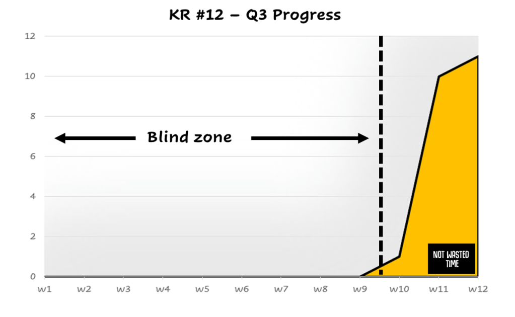 Isn’t it so close to a binary (Yes/No) lever? For almost all of the quarter (Q3 in the example) we are blind, we can’t see the progress, missing context, and all the OKR benefits to rectify.